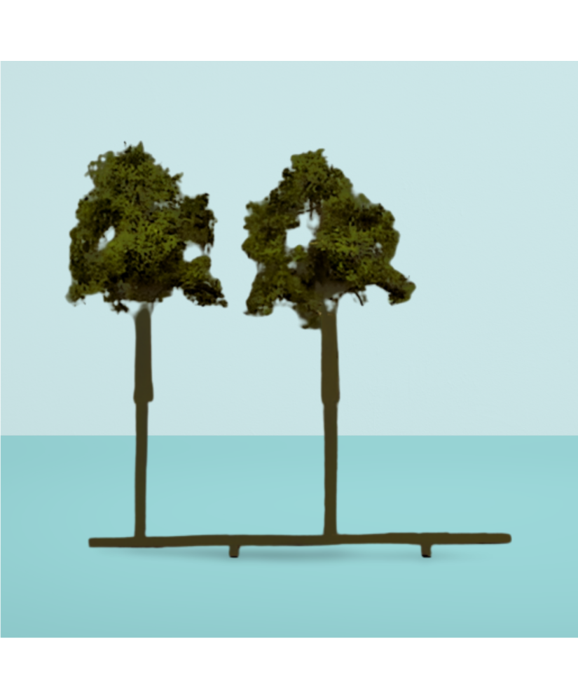 2 arbres feuillus en métal photodécoupé et floqué vert clair - 25,00mm ( 606750 )