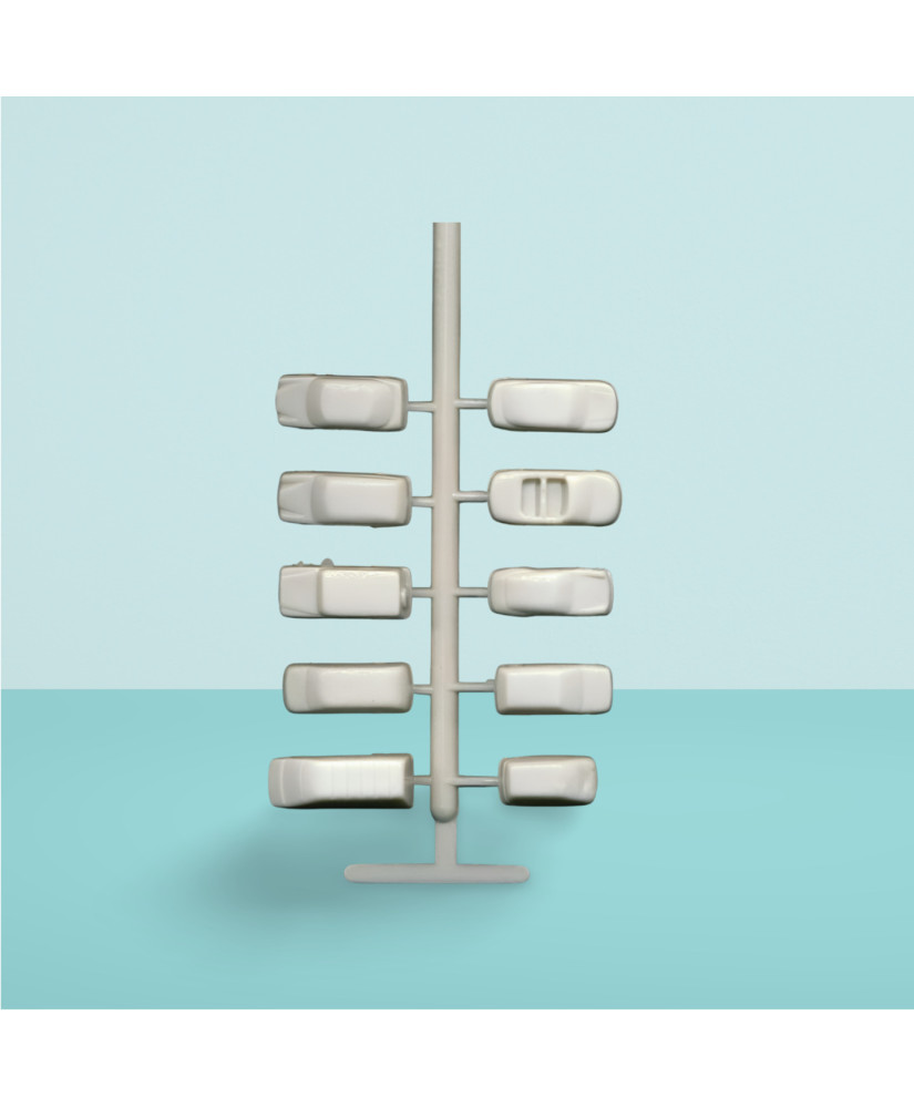 9 voitures & 1 camionnette en polystyrène blanc moulé - échelle : 1/200