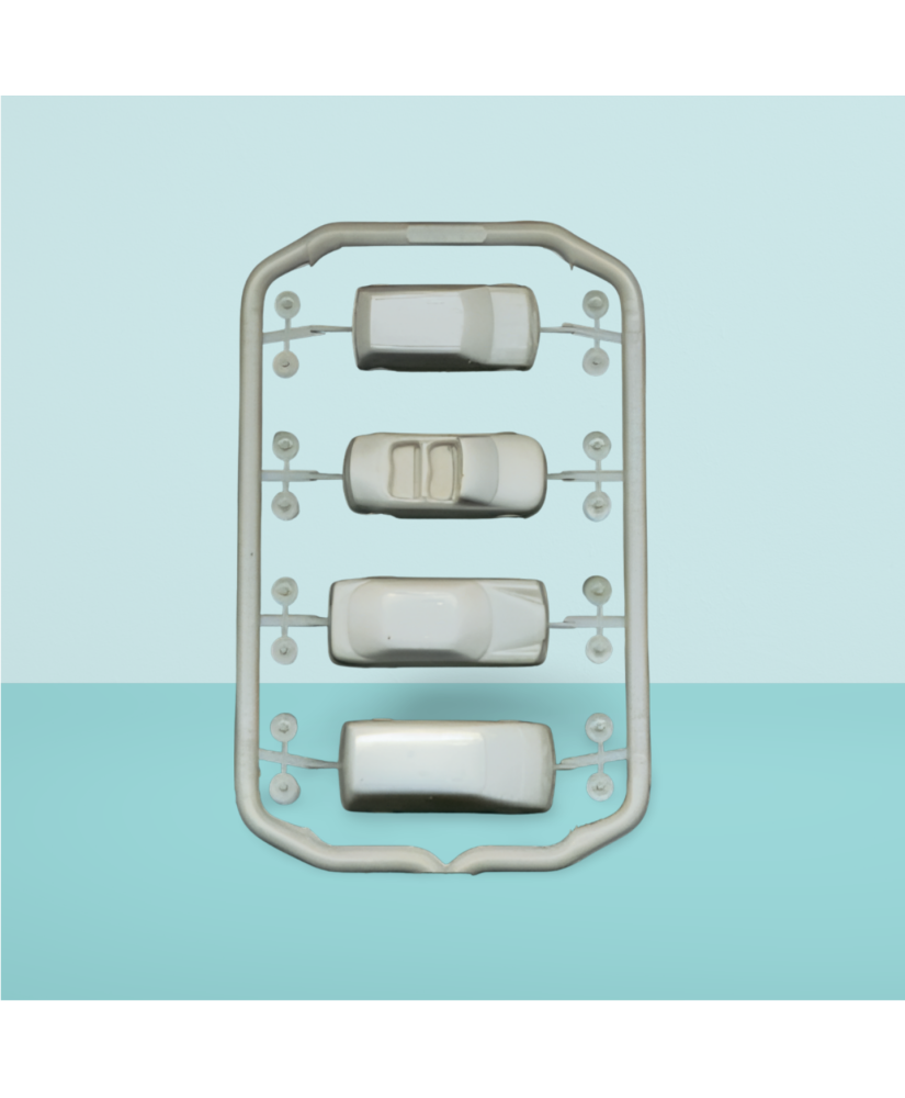4 voitures en polystyrène blanc moulé - échelle : 1/100